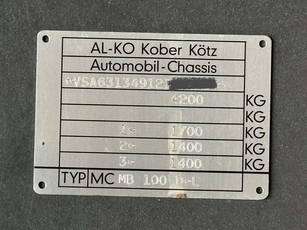 Mercedes-Benz MB100 / MC 42 AL-KO Dubbel As Marktwagen Marge Nieuwe Apk